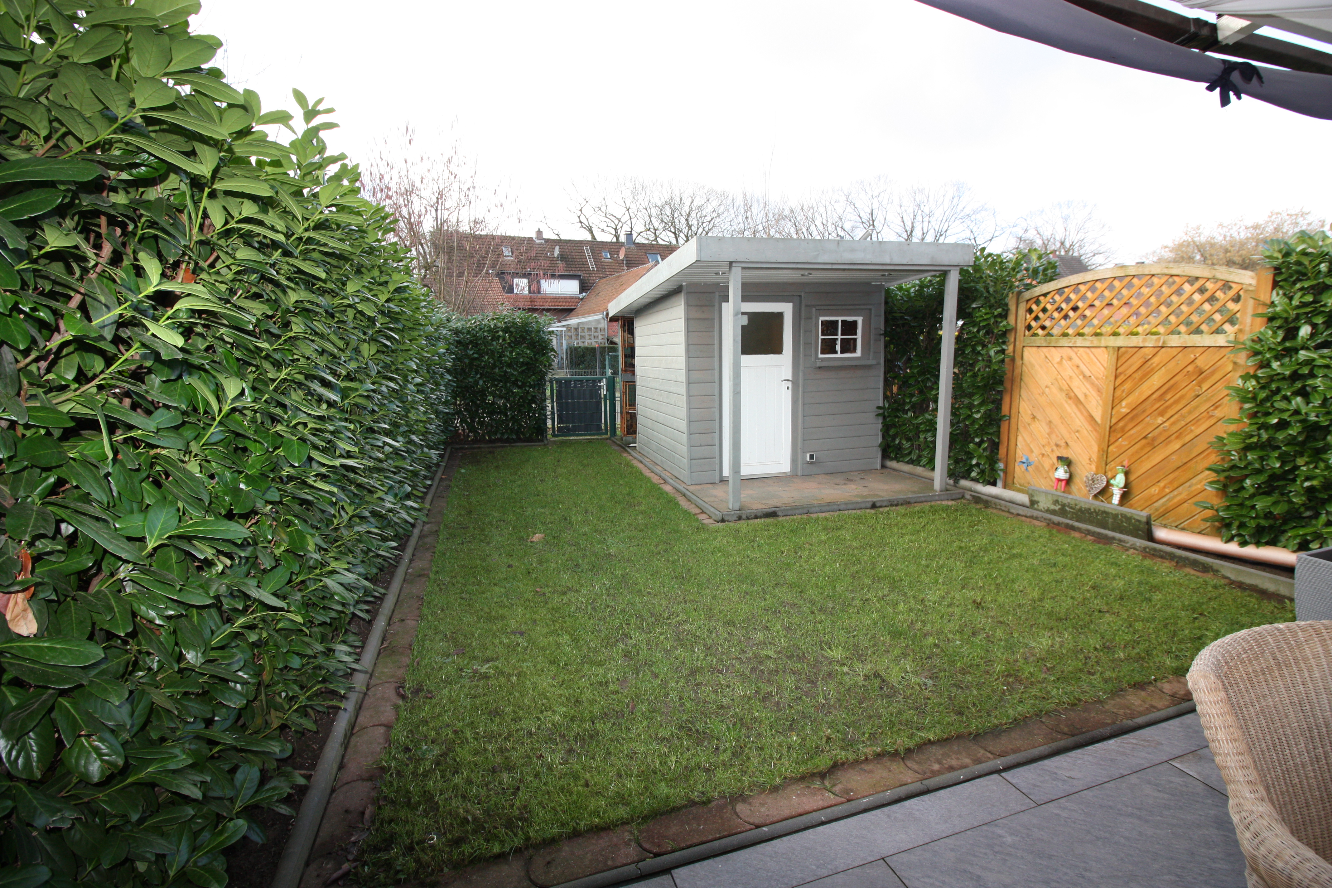 Herzstück dieser besonderen Immobilie ist der schön angelegte Garten, der in Süd-/West Lage ausgerichtet ist und ein neues Gartenhaus besitzt. Die teilweise überdachte Terrasse bietet auch einen schönen Rückzugsort.