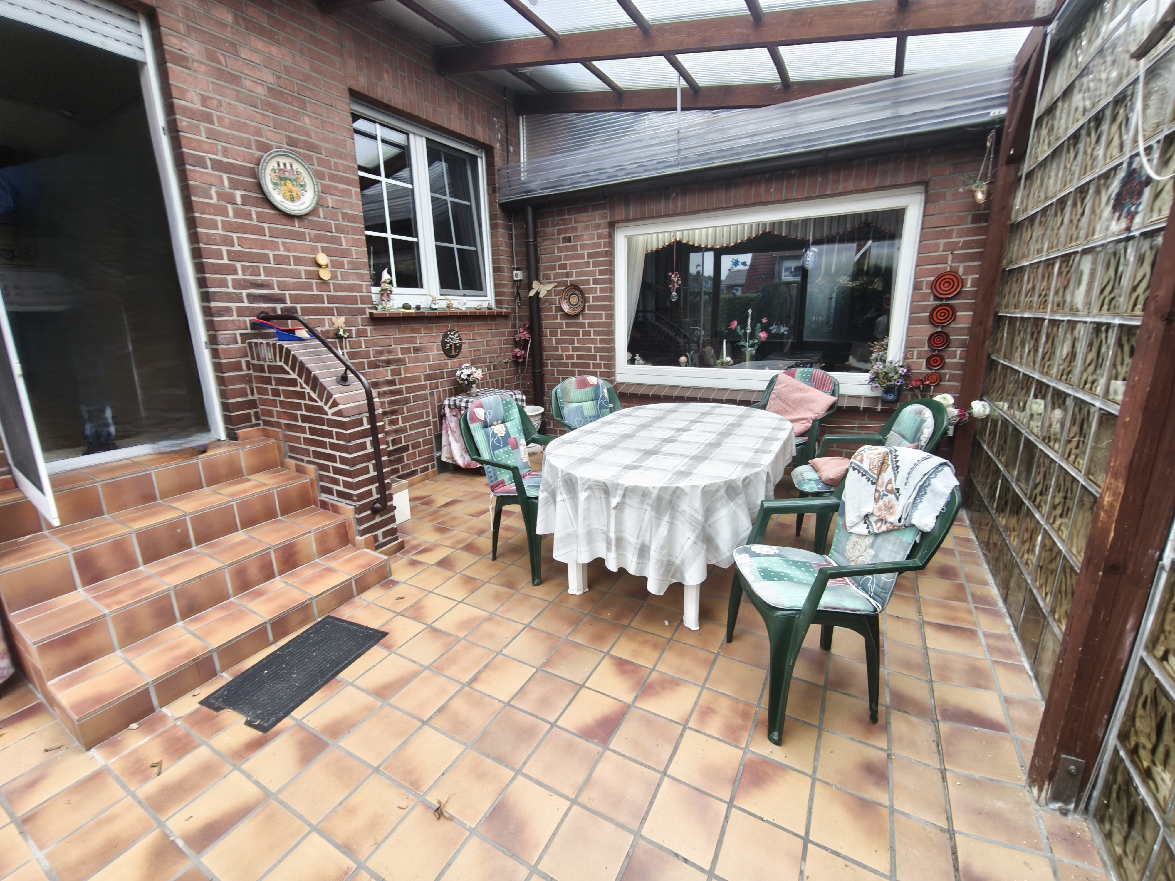 Eine überdachte sehr geräumige Terrasse lädt im Außenbereich zum Verweilen ein und der teilweise wohnlich ausgebaute Keller bietet zusätzlichen Stauraum.