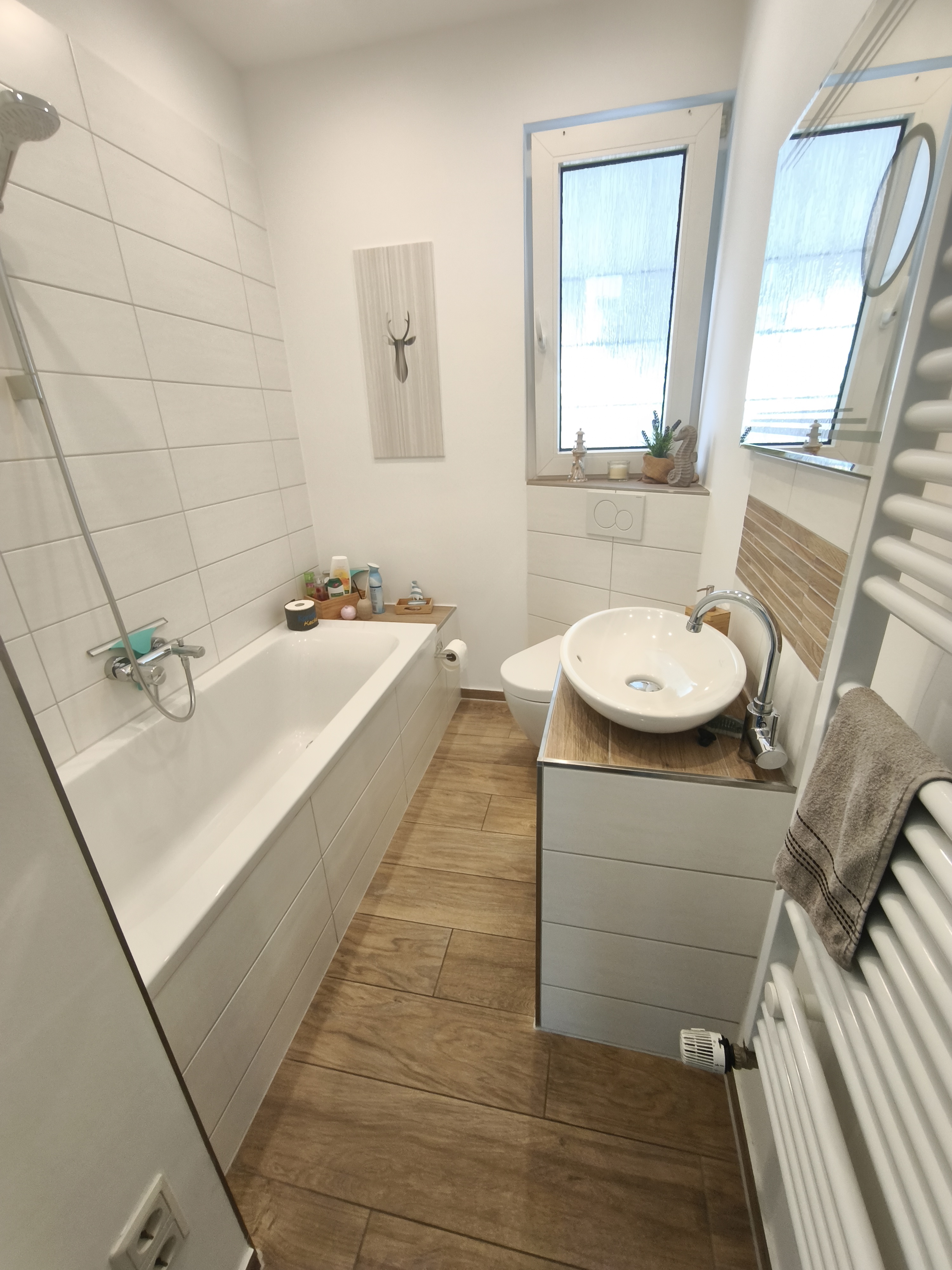 - Ausstattung des Bades Badewanne Dusche Fenster