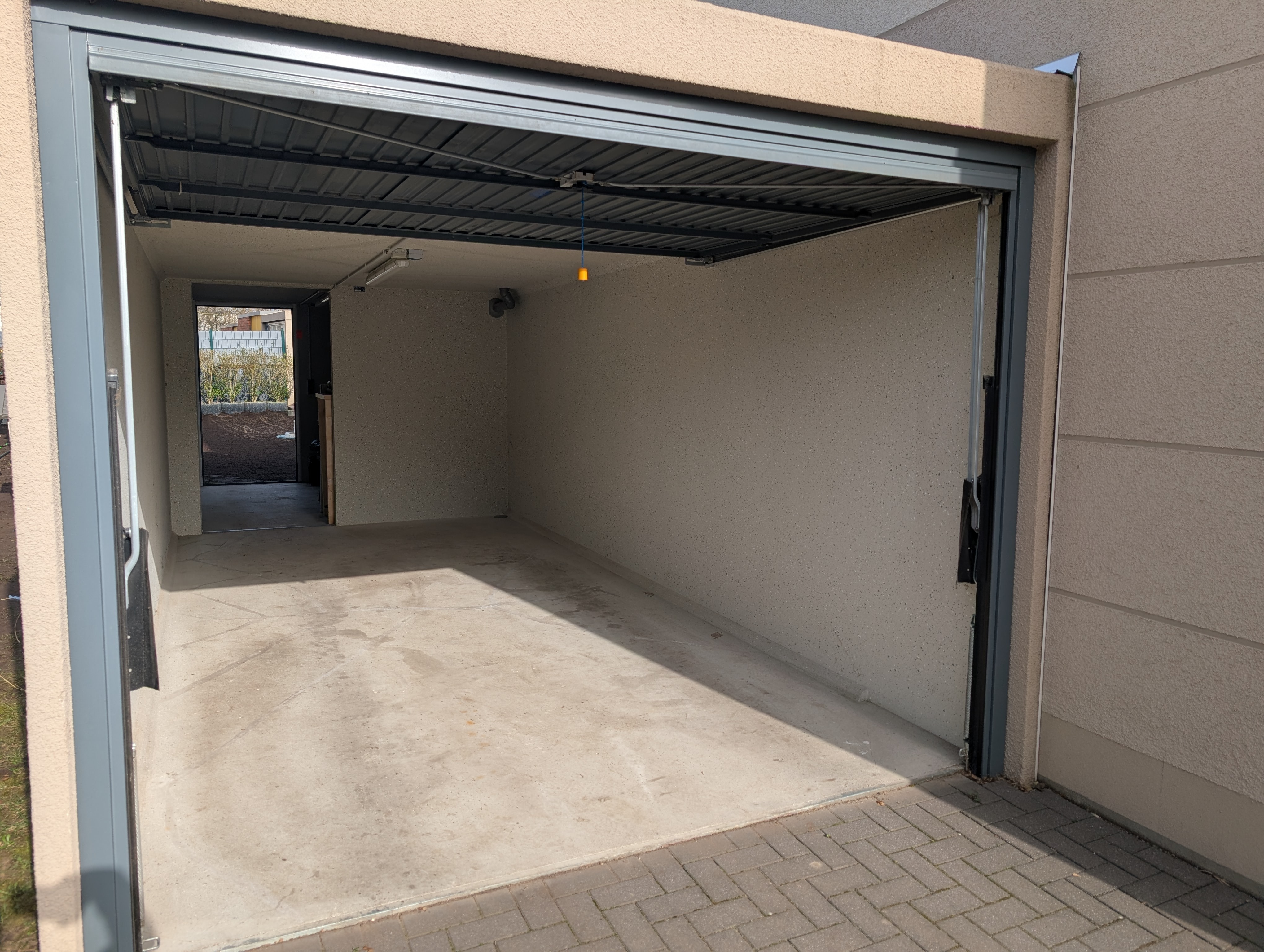 - übergroße Garage mit angrenzendem Geräteraum und Durchgang in den Garten